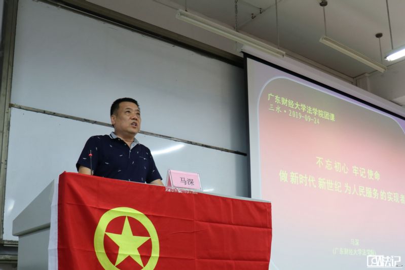 2019924日晚上七点整,由广东财经大学三水校区yl6809永利官网主办的讲座《不忘初心,牢记使命——做新时代新世纪为人民服务的实现者》在励学楼207教室如期举行。中国航天社会系统工程实验室研究员兼yl6809永利官网副教授马深老师担任了此次讲座的主讲人,为同学们深入阐述如何在学法之涯中怀抱初心,为国为民奉献终身。