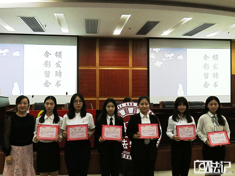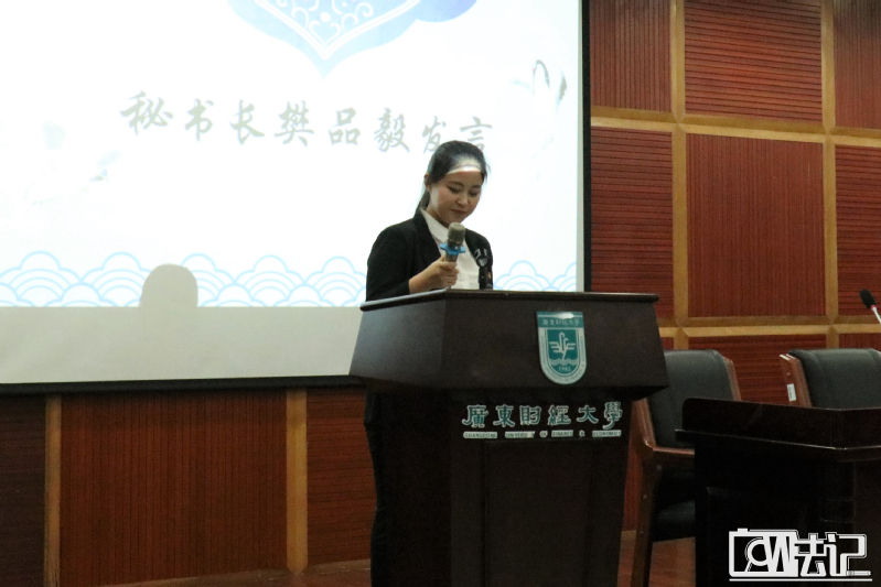 聘书颁发仪式结束后,团总支第一副书记吴曼婷上台发言。她首先欢迎各位领导嘉宾与同学的到来,接着回顾了过去一年法律知识竞赛、班风等活动得以成功举办的感想,指出团学成员要不断学习、保持谦逊的态度、增强服务意识、为提升优良作风起到表率作用。而学生会主席许琳婉则介绍了自己的日常工作情况和未来团学部门的发展方向。