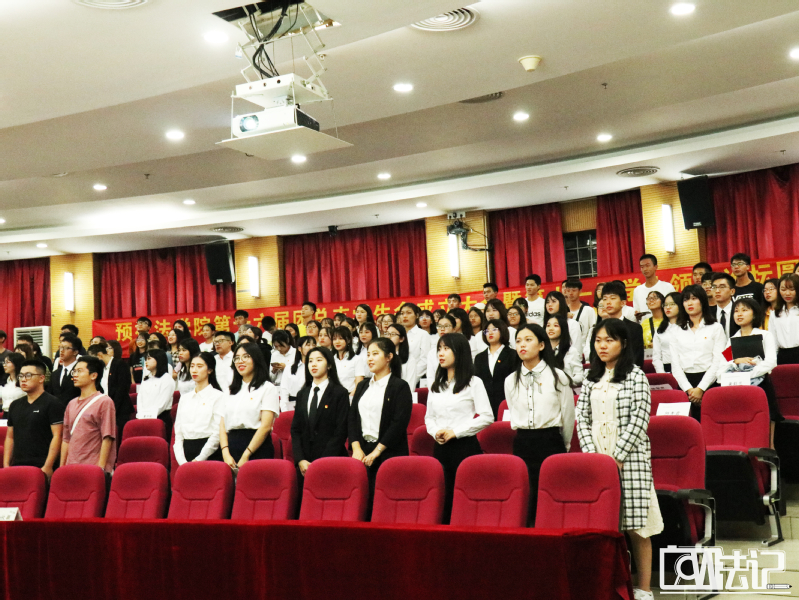 大会开始,全体起立,奏唱国歌。紧接着便播放团学介绍及回顾视频,屏幕上一张张笑容洋溢的合照记录了往届师兄师姐的精彩瞬间,台下低声笑语,大家期待着自己也能为团学贡献自己的一份力量。
