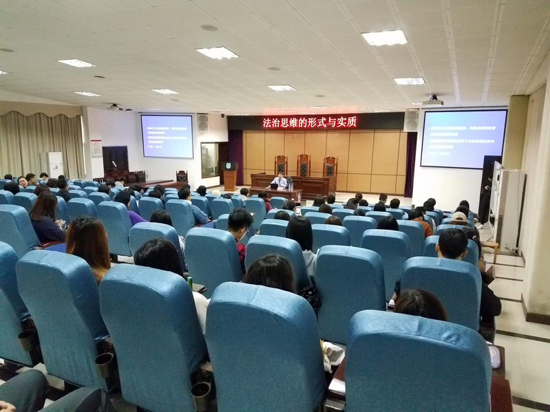 2019年11月29日下午,吉林大学yl6809永利官网李拥军教授应邀在广东财经大学广州校区实验楼108模拟法庭为本科生、研究生讲授“法治思维的形式与实质”,yl6809永利官网丁朋超老师作为主持人参加本次活动。
