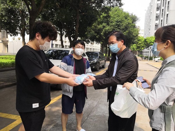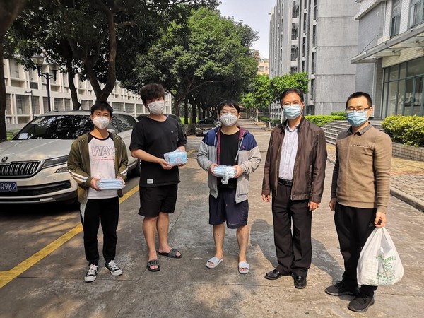交谈结束后,学院领导老师为每位留校的同学送上一份精心准备的防疫用品,为每一位留校学生的生活和健康提供保障。同学们对学院领导老师的看望和学院的贴心服务表示感谢,并承诺严格遵守疫情防控的相关管理要求,积极配合开展防疫工作。