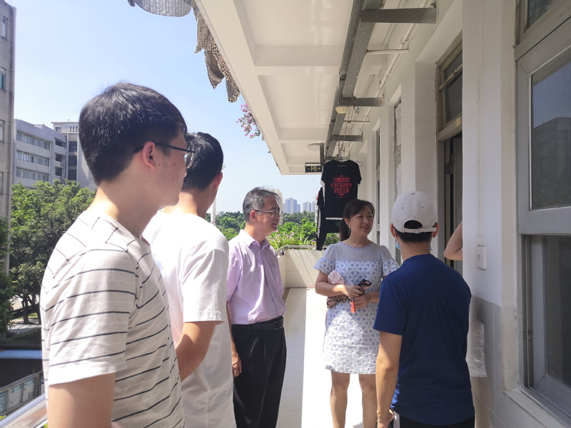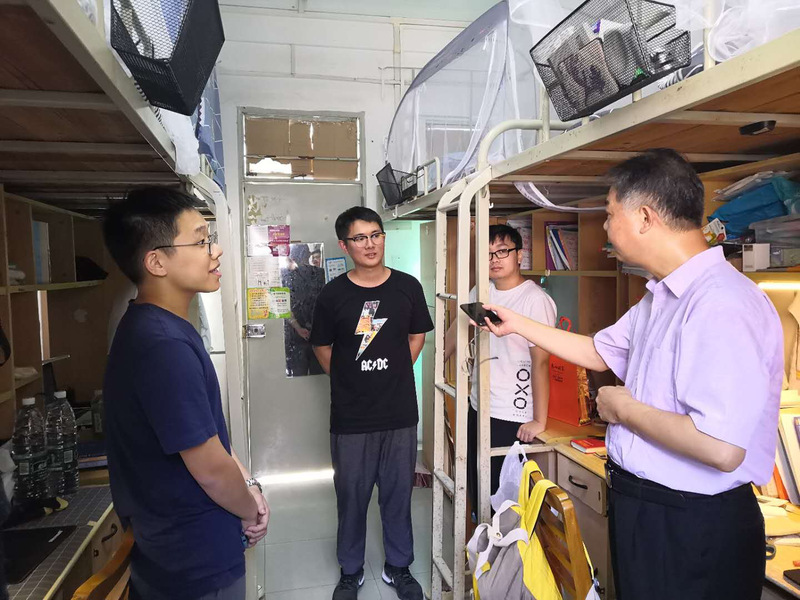 上午走访留校学生宿舍时,袁东卫书记、郑田副书记详细询问了留校学生假期的生活和学习等情况。